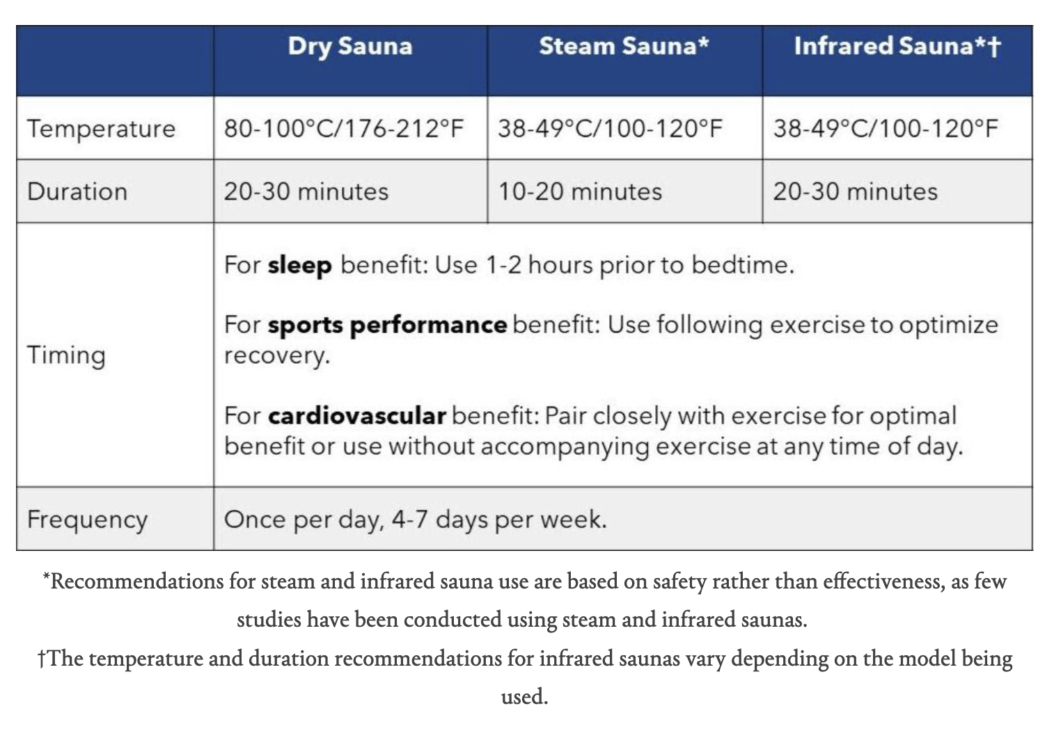 And finally, this last figure shows the optimal protocols for ensuring you get the benefits from sauna found in the research.